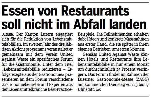 zentralplus | 19.10.2016 – „Foodwaste: Kanton Luzern nimmt Beizer in die Pflicht“